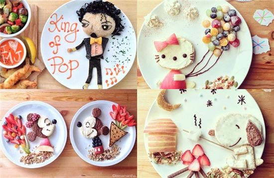 사진 속 접시 위에는 '마이클 잭슨'과 '헬로 키티', '미키마우스' 등 유명 인물 및 다양한 캐릭터를 표현한 음식들이 담겨 있다.