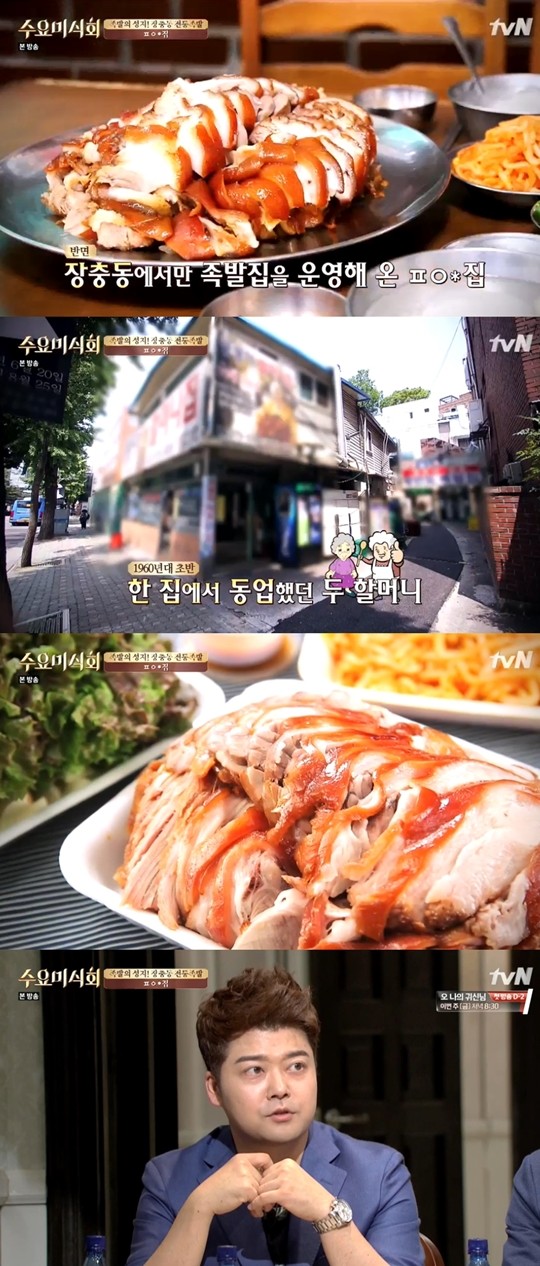 1일 오후 방송된 케이블방송 tvN '수요미식회'에는 족발로 유명한 집에 관한 이야기가 나왔다. 이날 방송에 나온 식당은 대문점과 장충도 평안도집, 영동족발이었다.