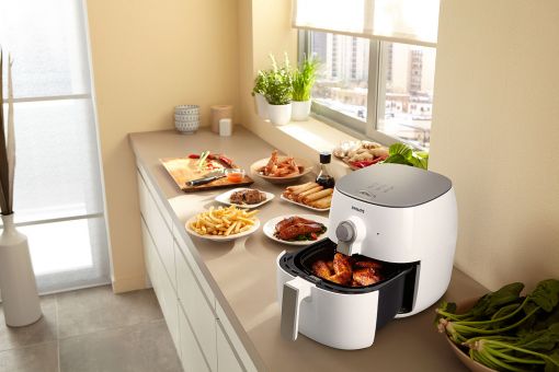 필립스 뉴 에어프라이어는 추가 기름 없이도 식재료 내의 지방 성분을 이용해 저유분 요리를 조리하는 건강 가전으로, 치킨을 지방 걱정 없이 바삭하게 즐길 수 있게 해준다. 강한 열을 빠르게 순환시키는 ‘터보 스타 에어스톰’ 기술을 탑재해 기존 모델보다 50% 더 균일하게 식재료를 익히는 것은 물론 바삭한 식감까지 살린 것이 특징이다. 크기는 20% 줄였음에도 불구하고 기존 모델과 동일하게 최대 3-4인분의 음식을 조리 할 수 있으며, 튀김뿐 아니라 구이, 베이킹, 과일칩도 조리 가능하다. 또한 퀵클린 바스켓은 음식이 눌러 붙지 않도록 논스틱 코팅 처리되어 있어 빠르고 간편하게 세척할 수 있다.