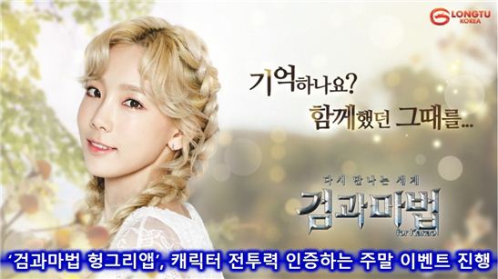[아시아경제 온라인이슈팀] 룽투코리아가 서비스하는 신작3D 모바일 MMORPG ‘검과마법for Kakao(이하 검과마법)’가 소녀시대 태연을 홍보모델로 기용하여 지난 7일 정식 출시 이후 구글플레이, 애플 앱스토어, 원스토어 등 3대 마켓에서 인기 1위를 달성할 정도로(6월 9일 오전 기준)가파른 상승세를 보이고 있는 가운데 유저 커뮤니티 ‘검과 마법 헝그리앱’에서는 이를 기념하여 금전적 혜택을 지급하는 인증미션 이벤트를 진행하고 있다.