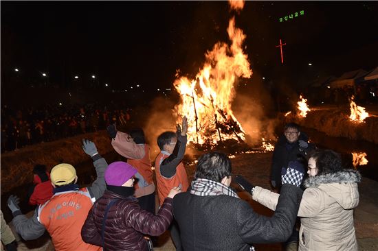 이날 대보름 행사에는 가족단위 주민 5만여명이 함께 어우러져 쥐불놀이, 부럼깨기, 귀밝이 술 마시기 등을 즐겼다.