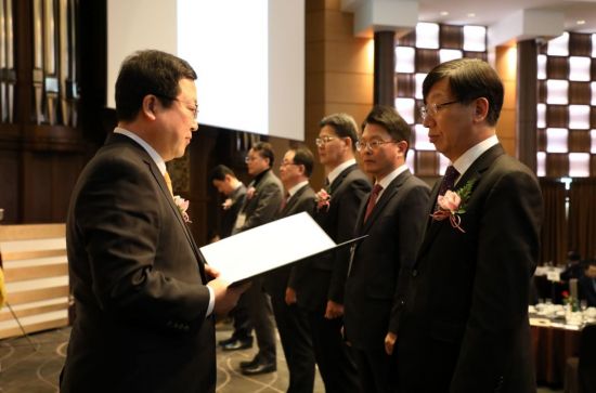 [아시아경제(대전) 정일웅 기자] 박춘섭 조달청장은 22일 서울 서초구 엘타워에서 열린 ㈔정부조달우수제품협회 정기총회에 참석, ㈜뉴보텍 ㈜서전기전, 에이펙스인텍㈜, 서번산업엔지니어링㈜, ㈜대한중전기 ㈜동보파워텍 등 6개 정부조달우수업체에 표창을 수여했다. 박 청장(왼쪽)이 기업 대표자들에게 표창장을 전달하고 있다. 조달청 제공