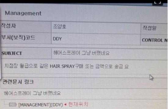 조 회장은 이 게시글 대한 댓글에서 "지점장 월급으로 같은 헤어 스프레이 구매 또는 금액으로 송금 요"라고 적었다. 직원 과실로 발생한 손해액에 대해 업무책임자인 지점장이 월급으로 해결하라는 취지다. 대한항공의 여객운송 약관상 대한항공의 과실에서 기인해 발생한 사실이 입증되는 경우 휴대수하물에 대한 손해액은 회사가 부담하도록 돼 있다.