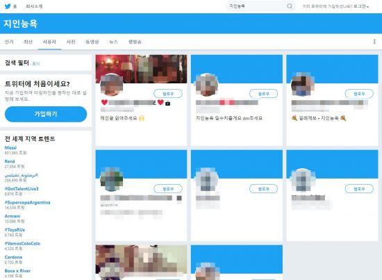 실제로 기자가 15일 오전 11시 기준 트위터에서 ‘지인 능욕’ 이라는 키워드로 검색해보니 사진과 같이 관련 계정을 볼 수 있었다. 이들 계정은 일대일 쪽지를 받아 합성 의뢰를 받고, 합성해주고 있는 것으로 나타났다. 그런가 하면 또 다른 소셜네트워크 ‘텀블러’에서 ‘지인 능욕’을 검색하자, 수십 개의 관련 계정이 노출됐다. 계정 모두 불특정 다수 여성의 얼굴을 특정 장면과 합성해 노출하고 있었다.