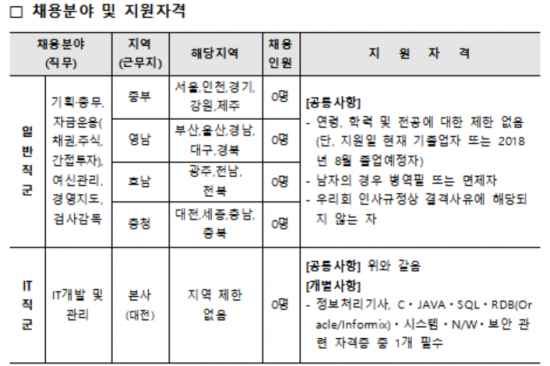 이번 채용은 연령, 학력, 전공 제한 뿐만 아니라 토익 등 어학성적 제한까지 완전히 철폐했다. 단 IT직군의 경우 IT개발 및 관리 분야를 선발하기 때문에 관련 자격증이 요구된다.