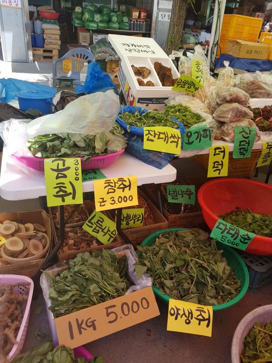 시를 읊게 만드는 용문의 나물이 지금 한참 축제 중이다. 우리나라 어느 곳이나 봄이 되면 볼거리, 먹을거리가 많지만 우리 동네 양평은 봄이면 산나물 축제로 바쁘다. 양평은 강원도에서 발원한 남한강과 북한강이 만나는 지역으로 옛날에는 물길을 이용한 교통의 중심지로 강원도에서 수도 한양으로 가는 물품들은 양평나루를 거쳐야 했고 그렇게 오가는 물품들과 함께 장이 서고 많은 사람들이 북적거렸다. 지금은 그 물길들을 따라 길이 생기고 수도권으로 이어지는 전철까지 생겨 더 많은 사람들이 오가고 있다. 양평은 산이 깊고 물이 맑아 산나물이 자리기에 좋은데 은행나무로 더 유명한 용문산에서 나는 산나물은 1656년 유형원이 편찬한 전국 지리서인 <동국여지지>에 ‘임금님 진상품으로 용문산 나물이 최고’라는 내용을 남겨져있다. 용문산은 산세가 웅장하고 골짜기가 깊어 나물이 많다.