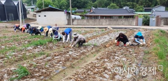 [아시아경제 호남취재본부 서영서 기자] 본격적인 농번기를 맞아 장흥군 공직자들이 농촌 일손돕기에 팔을 걷어붙이고 나섰다.