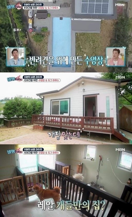 또한 신효범이 살고 있는 집 뒤에는 사람이 살아도 될 만큼의 큰 개집이 자리하고 있었다. 그 집은 반려견들을 위한 구조로 만들어져 있었다.