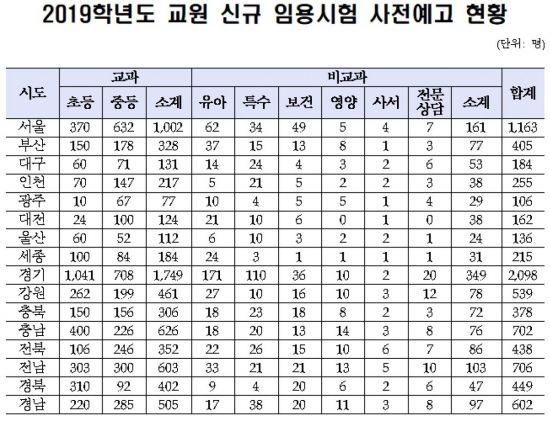 전국 시·도교육청, 2019학년도 교원 선발규모 예고 … 9월 확정공고