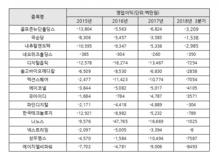 코스닥 13개사, 관리종목 지정 코앞… 3년 넘어 올 3분기도 영업손실