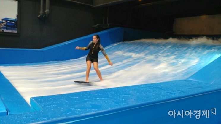 [아시아경제 조목인 기자] 버튼을 누르자 서핑장 위로 강한 물줄기가 쏟아져나온다. 1분동안 11만3000t의 물이 시속 27㎞의 속도로 쏟아지며 인공파도를 만든다. 숙련된 서퍼들은 그 위에서 아슬아슬하게 서핑을 즐긴다. 추운 바깥 날씨에도 실내 서핑장의 온도는 따뜻하다. 서퍼들이 물줄기를 가를때마다 구경하는 사람들 사이에서는 '아~'하는 탄성이 나온다.