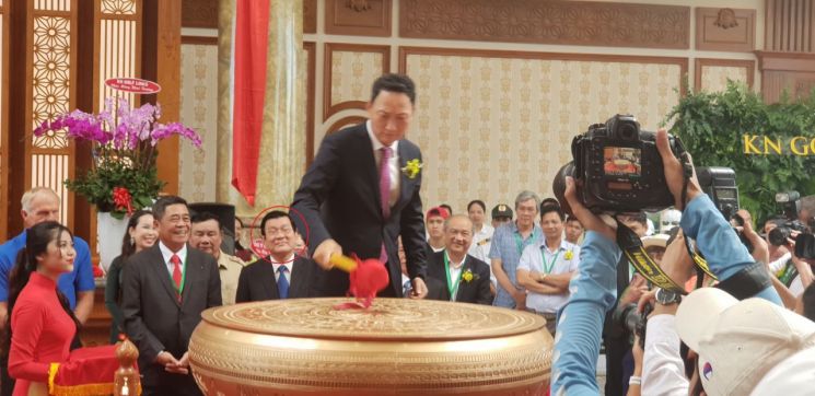한 골프장 개장행사에 참석한 쯔엉떤상 전 베트남 주석(원속의 인물)이 김도현 대사를 바라보고 있다. 김 대사는 이 행사에 가족을 포함한 항공권을 받아 참석했다는 이유로 김영란법 위반이라는 외교부 감사 지적을 받았다.