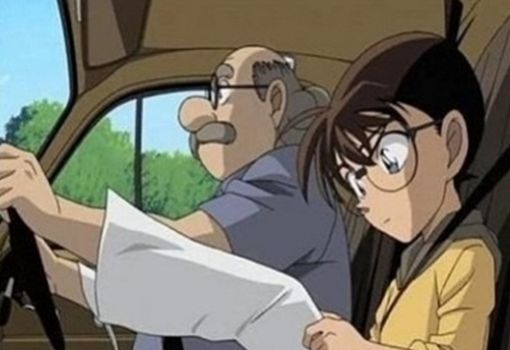 특히 그의 팔에 닿은 지도가 마치 코난의 바지처럼 보여 코난이 발로 운전하는 착시효과를 일으킨다.