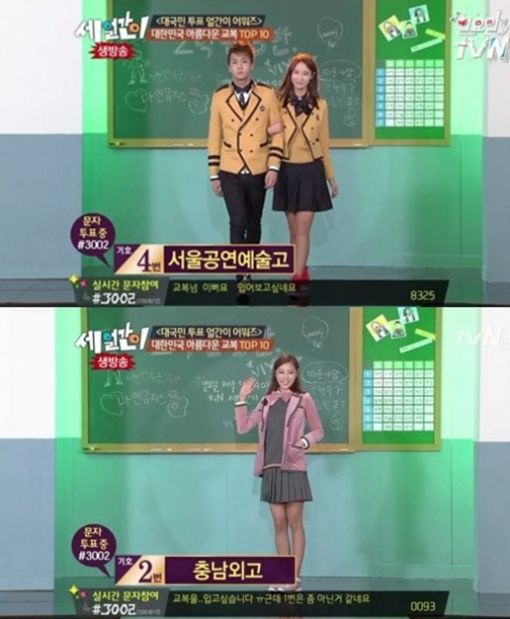 한편 이날 생방송으로 진행된 '세얼간이'는 실시간 문자 투표를 통해 가장 아름다운 교복을 뽑았다. 투표 결과 1위는 서울공연예술고 교복이 차지했다.