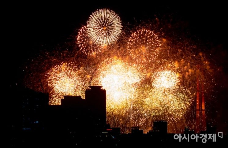 [아시아경제 우수연 기자] 서울 하늘을 화려하게 밝힌 역대급 불꽃축제가 5일 여의도 한강공원에서 개최됐다.