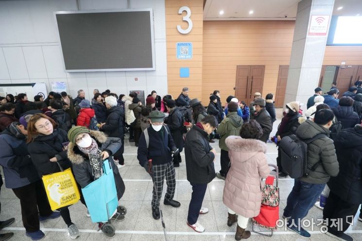 10일 경기 고양시 킨텍스 제1전시장에서 열린 2020 K-웰니스 설날 착한선물전에서 시민들이 입장하기 위해 줄을 서고 있다. /문호남 기자 munonam@
