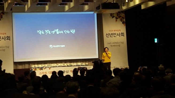 이어 2020년도 중기부 정책방향을 발표하며 박 장관은 "중기부는 4차 산업혁명 선도국가를 위한 스마트 대한민국으로 나가기 위해, 전년 대비 30% 증액된 13조4000억원의 예산을 올해 편성했다"고 강조하고 "중소기업을 위한 스마트 공장, 벤처스타트업을 위한 스마트 서비스, 소상공인을 위한 스마트 상점을 통해 세계최강의 DNA(Data, Network, AI) 코리아를 구축해 디지털 경제로 대전환하겠다"고 밝혔다. 아울러 박 장관은 "벤처투자촉진법 제정안이 지난 9일 국회를 통과함에 따라 벤처투자시장이 한층 더 활발해질 것으로 기대된다"며 "중기부는 시행령 등 후속법령을 마련해 보다 자유롭고, 시장친화적 벤처투자시장을 조성하는데 더욱 힘쓰겠다"고 강조했다.