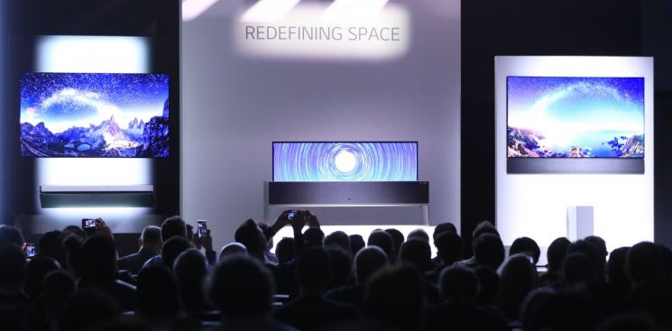 지난 7일 세계 최대 가전·정보기술(IT) 전시회인 'CES(Consumer Electronics Show) 2020' 개막을 하루 앞둔 6일 오전(현지시간) 미국 네바다주 라스베이거스 만달레이베이 호텔에서 LG전자 글로벌 프레스 컨퍼런스가 열리고 있는 모습.(사진=연합뉴스)