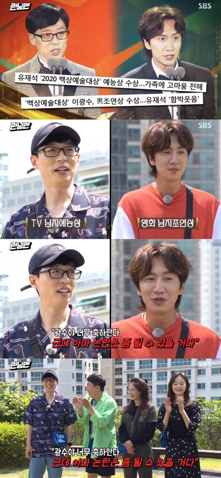 '런닝맨' 유재석, 이광수 백상 수상에 "논란 좀 될 것...당분간 핸드폰 하지 마라"