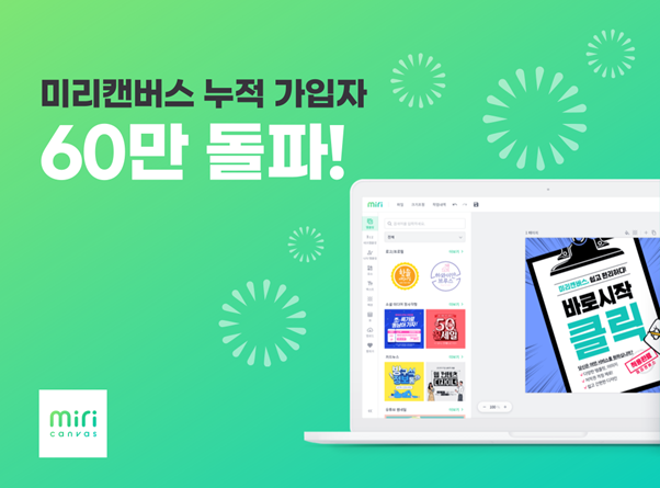 무료 디자인 플랫폼 ‘미리캔버스(miricanvas)’를 운영하는 (주)미리디는 미리캔버스의 누적 가입자 수가 7월에 60만명을 넘어섰다고 20일 밝혔다. 또한 올해 5월부터 매월 10만명 이상씩 가파르게 가입자가 늘고 있다고 회사는 전했다.