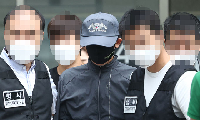 위치추적 전자장치(전자발찌) 훼손 전후로 여성 2명을 잇달아 살해한 혐의를 받는 강윤성. 사진은 지난달 31일 영장실질심사 출석 후 나오는 모습. [이미지출처=연합뉴스]
