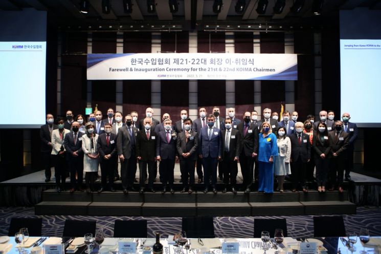 [아시아경제 김보경 기자] 한국수입협회(KOIMA, 코이마)는 21일 오후 소공동 웨스틴조선서울에서 제22대 김병관 회장 취임식을 개최했다.