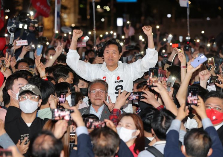 이날 지상파 방송 3사의 출구조사 결과 오 후보는 예상 득표율 58.7%을 기록, 40.2%를 득표할 것으로 예상된 더불어민주당 송영길 후보를 18.5%포인트 차이로 앞섰다.