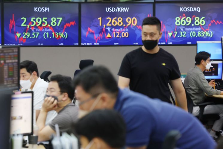 [아시아경제 이선애 기자] '고물가 쇼크'에 코스피 지수가 급락하며 연 저점을 뚫었다. 13일 코스피는 전장보다 45.66포인트(1.76%) 내린 2550.21에 개장한 후 2%대 급락세를 보이며 2540대로 주저 앉았다. 장 초반 2541.79까지 떨어지며 지난달 12일 장중 기록한 연저점(2546.80)을 경신했다.