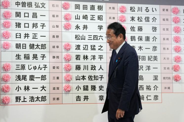 [아시아경제 정현진 기자] 일본 참의원 선거에서 집권 자민당이 독자적으로 과반 의석을 확보할 정도의 대승을 거뒀지만 기시다 후미오 일본 총리의 표정은 굳어있었다. 선거가 치러진 10일 저녁 검은 넥타이에 정장 차림으로 자민당 당사에 나온 기시다 총리는 당선 확정을 의미하는 새빨간 장미 대신 옅은 핑크색 장미를 당선자 이름 옆에 붙였다. 선거 이틀 전 발생한 아베 신조 전 총리 피습 사망 사건을 의식한 모습이었다.