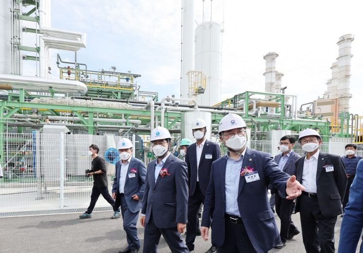 평택 수소생산시설 살펴보는 참석자들 (평택=연합뉴스) 홍기원 기자 = 지난달 27일 오후 경기도 평택시 수소특화단지에서 열린 '평택 수소생산시설 준공식'에서 김동연 경기도지사, 박일준 산업통상자원부 제2차관을 비롯한 참석자들이 시설을 둘러보고 있다. 2022.7.27 xanadu@yna.co.kr (끝) <저작권자(c) 연합뉴스, 무단 전재-재배포 금지>