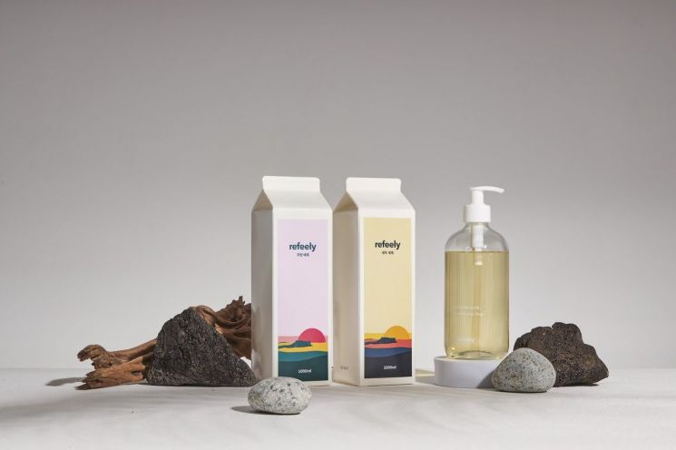 리필리는 기존에 우유만 담았던 종이팩에 주방세제, 세탁세제, 섬유유연제, 샴푸, 바디워시 등 생활용품부터 화장품까지 다양한 제품을 담아 생산·제조하는 스타트업이다.