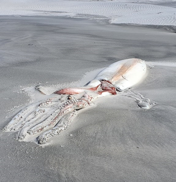 '몸통 길이만 4m' 뉴질랜드 해변서 발견된 대왕오징어 사체