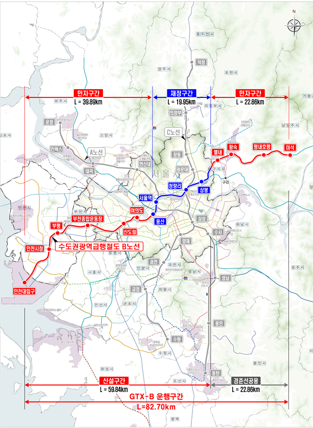 한편, 한 차례 유찰을 겪었던 GTX-B노선 민자구간도 다시 사업자 선정 절차를 밟고 있다. 민자구간의 수행 사업자는 대우건설 컨소시엄이 유력하다. 민자구간의 우선협상자도 내년 1월 선정한다는 계획이다.