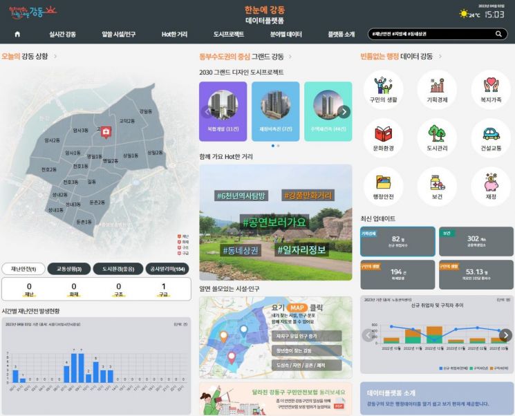 강동구(이수희 구청장)가 구의 각종 데이터를 시각화해 손쉽게 제공하는 ‘한눈에 강동’ 데이터플랫폼 서비스를 5월 1일부터 시작한다고 밝혔다.