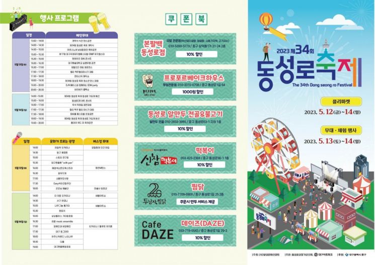 대구시 중구청이 주최하고, 달성문화선양회(회장 이준호)가 주관하는 2023 제34회 동성로 축제가 12일부터 14일까지 동성로 일원에서 개최된다.