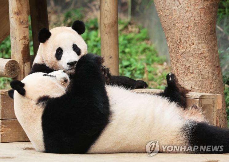 아이바오와 러바오는 2016년 3월 시진핑 중국 국가주석이 한중 친선 도모의 상징으로 보내왔다. 당시 3∼4세로 어렸던 두 판다는 사육사들의 보살핌 속에 성체로 자라 2020년 7월 첫 딸인 푸바오를 낳았다.