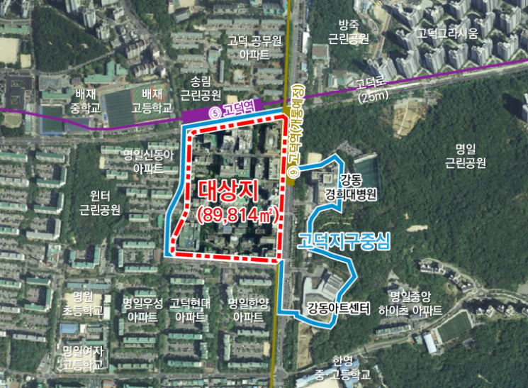 명일동 48 일대 고덕택지(명일동 상업용지) 지구단위계획구역(8만9814㎡)은 인근의 강동아트센터, 강동경희대학교병원과 연계해 상업·문화·의료기능을 활성화하고 고덕역이 중심이 되어 강동 동부 권역의 생활중심지로 새롭게 자리매김할 수 있도록 기능을 강화해 나갈 방침이다.