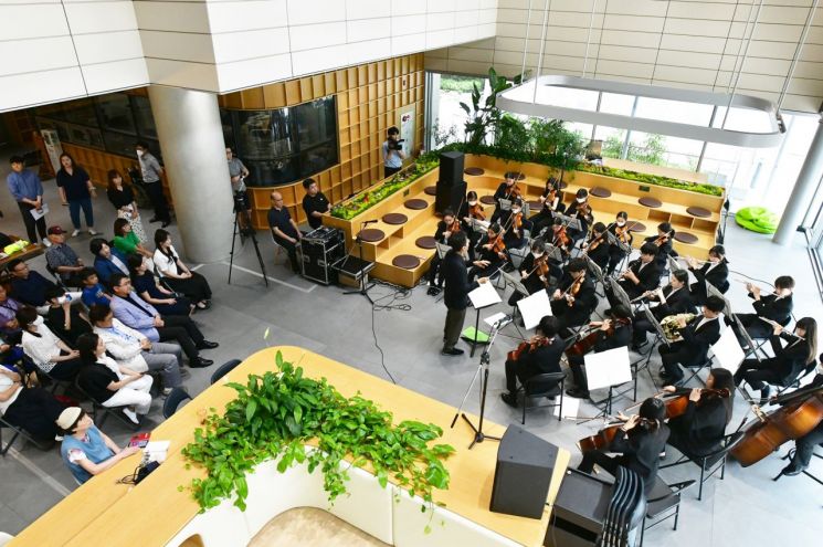 지난 4일 낮 12시에는 로비에서 ‘청소년교향악단 찾아가는 연주회’가 진행됐다. 구는 복합문화공간으로 재탄생한 구청 로비를 활용해, 직원 및 구민들에게 덥고 바쁜 일상 속 잠깐의 힐링 시간을 선사하기 위해 음악회를 개최하고 있다. 이날은 송영규 지휘자와 단원 24명이 요하네스 브람스의 ‘사랑의 노래’, ‘집시의 노래’, 시네마천국 OST ‘Cinema Paradiso’, ‘Love Theme’ 등 대중들에게 친숙한 연주를 선보였다.