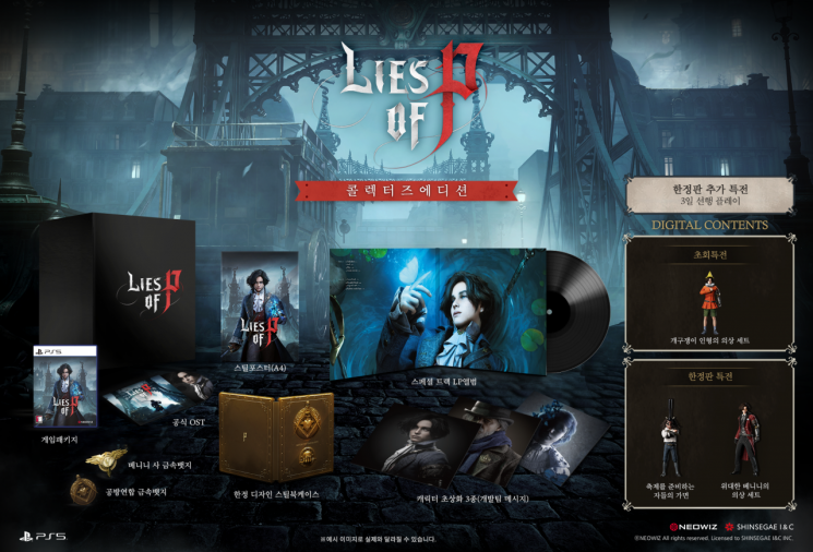 네오위즈는 오는 17일부터 신작 ‘P의 거짓’의 한국 콘솔 패키지 예약 판매를 시작한다고 16일 밝혔다.