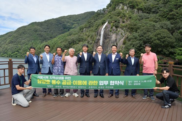 이에 31일 담양군과 순창군, 한국농어촌공사 담양지사와 순창지사, 순창군 구림면 주민대표는 업무협약을 체결하고. 차수벽 철거와 더불어 한해 우심 지역인 순창군 금과면에 담양호 하천수 유입 등 상생을 위한 다양한 현안에 협력하기로 했다.
