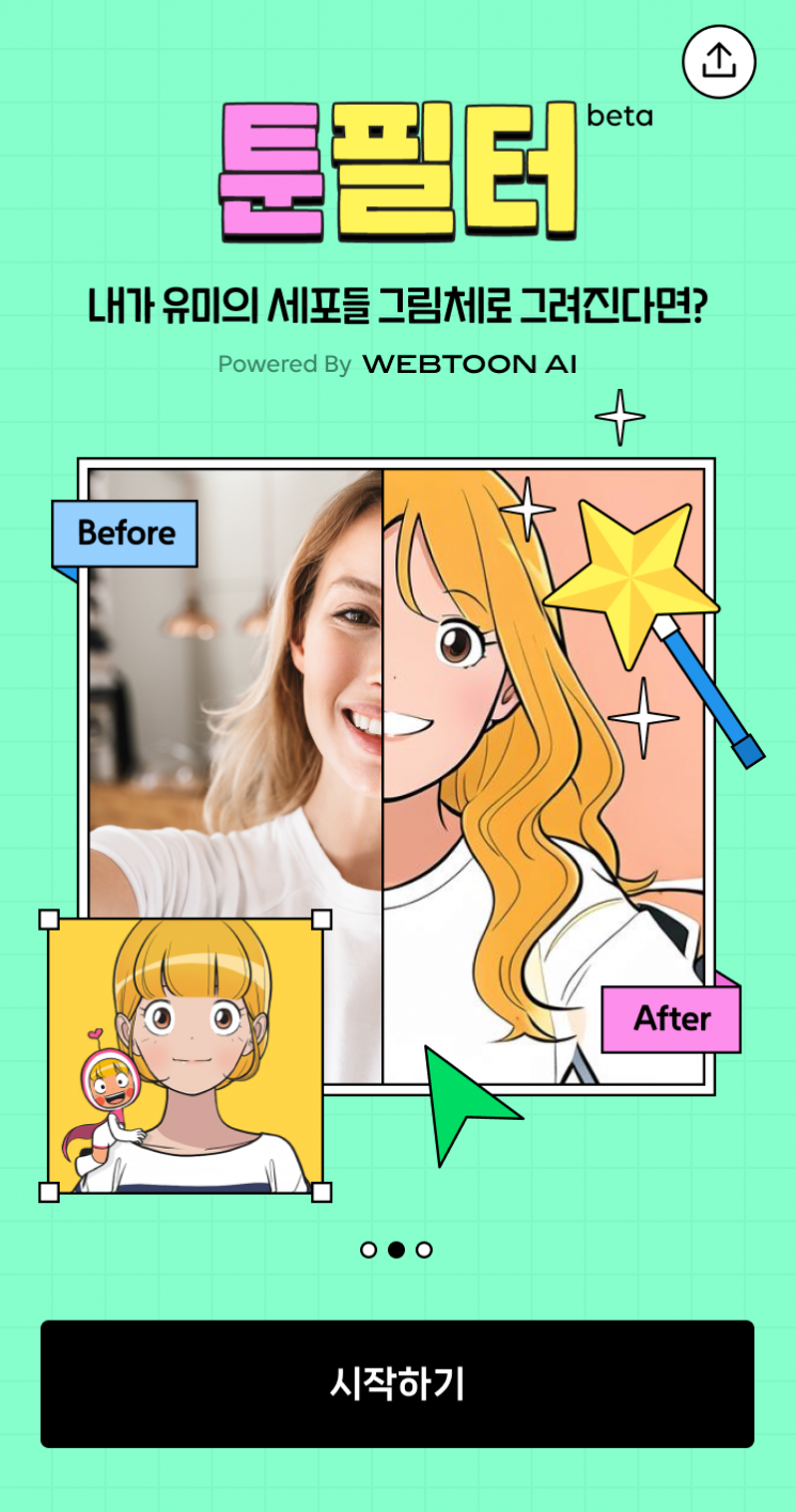 "웹툰 '유미의 세포들' 캐릭터로 변신한 나의 모습은 어떨까?" 웹툰을 즐기는 독자라면 떠올려봤을 생각이다. 네이버웹툰은 이 생각을 '툰필터'로 구현했다. 인기 웹툰 작가의 그림체를 인공지능(AI)이 모사해 원하는 사진을 웹툰의 한 장면처럼 바꿔주는 서비스다. 보는 웹툰에서 즐기는 웹툰으로 한 걸음 더 나간 것이다. 툰필터는 해외에서 입소문을 타고 인기를 끌었다. 지난 5월 베타 서비스 후 일주일 만에 2000만장이 넘는 이미지를 생성했다. 태국, 프랑스, 북미 등에서 일정 기간 시즌제로 서비스한 결과 이미지 6000만장 이상을 만들었다. 툰필터 흥행은 네이버웹툰 이용자 유입으로 이어졌다. 툰필터 공개 후 네이버웹툰 앱 신규 이용자 수는 전주 대비 5배 가까이 늘었다.