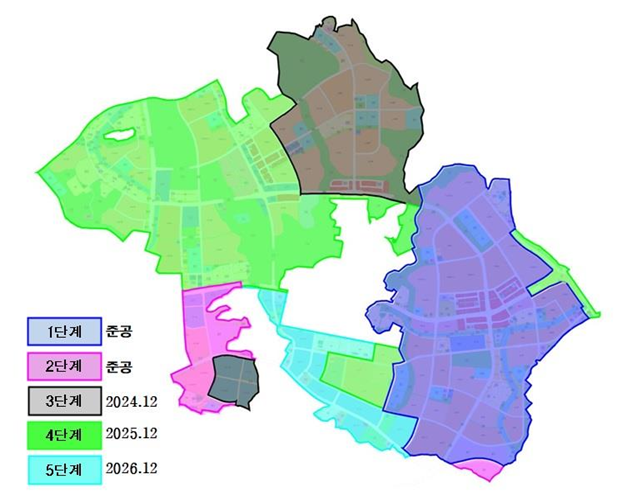 이번 개발·실시계획 변경은 5단계로 나눠진 단계별 시행으로 택지수급 조절을 통한 주택시장 안정 도모, 주택시장 수요에 맞춘 공동주택 평형 조정 등이 포함됐다.