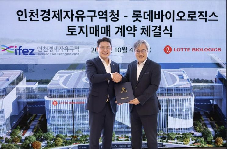 롯데바이오로직스는 인천경제자유구역청과 인천 송도국제도시 내 바이오 플랜트 건립을 위한 토지매매 계약을 체결했다고 4일 밝혔다. 이번 토지매매 계약에 따라 롯데바이오는 2030년까지 송도 11공구 KI20 블록(인천광역시 연수구 송도동 418, 418-9)에 3개의 바이오 플랜트를 건설해 총 36만ℓ항체 의약품 생산 규모를 갖출 예정이다. 1개의 플랜트 당 12만ℓ 규모의 항체 의약품 생산이 가능하며, 임상 물질 생산을 위한 소규모 배양기 및 완제 의약품 시설에 대한 추가에 대해서도 검토 중이다.