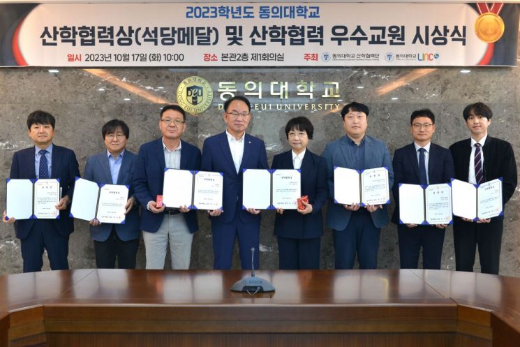 동의대가 지난 17일 오전 10시 본관 2층 회의실에서 산학협력상인 ‘2023년 석당메달’과 ‘산학협력 우수 교원’ 시상식을 열었다.