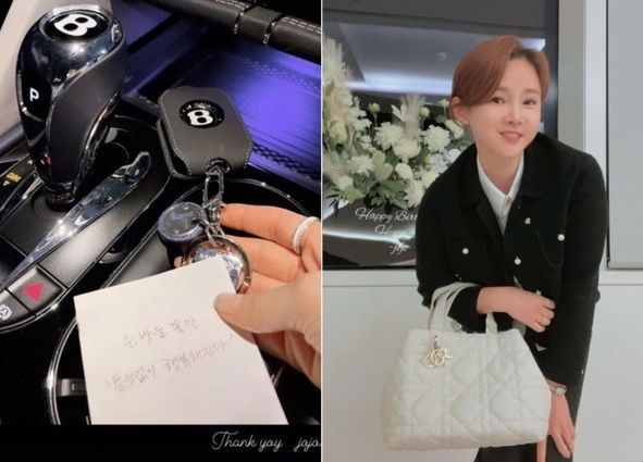남씨는 전씨와의 결혼 발표 전부터 받은 선물들을 SNS를 통해 공개해 왔다. 지난 8월 남씨는 인스타그램 스토리에 약 3억원대 벤틀리 벤타이가 차량의 내부사진, 자동차 열쇠와 함께 "고마워 조조"라고 적었다. [사진출처=남현희 인스타그램]