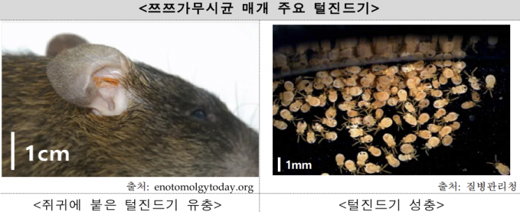 질병관리청은 쯔쯔가무시증의 매개체인 털진드기 밀도지수가 최근 4주간(41~44주) 3배 이상 급증했다고 15일 밝혔다. 44주차 환자발생 수도 41주차 대비 5배 이상 증가한 784명으로 집계됐다. 질병관리청은 야외활동 시 쯔쯔가무시증 감염 예방을 위해 예방수칙 준수를 당부했다.