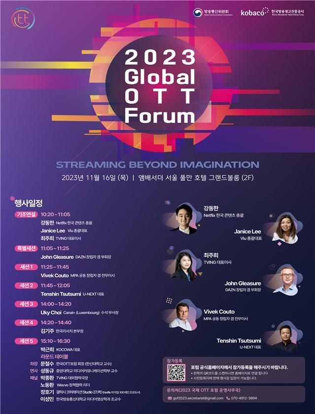 올해로 2회차를 맞이하는 이번 포럼에서는 국내 온라인동영상서비스(OTT) 사업자인 티빙, 웨이브뿐만 아니라 넷플릭스, Viu(홍콩), DAZN(영국), Canal+(프랑스) U-NEXT(일본) 등 글로벌 기업들이 참가했다.