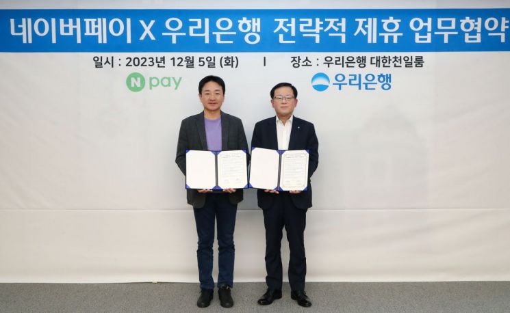 이번 협약을 계기로 양사는 ▲금융과 플랫폼 서비스를 연계한 혁신 상품 개발과 공동 마케팅 추진 ▲우리은행과 네이버페이 데이터 기반 서비스 이용 확대 ▲금융취약계층 대상 금융교육 관련 콘텐츠·서비스 연계 등을 위해 협업할 계획이다.