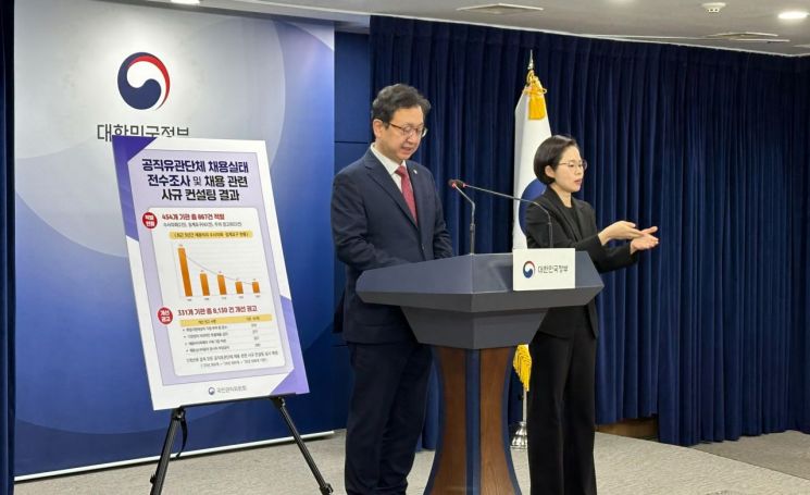 정승윤 권익위 부위원장 겸 사무처장은 이날 정부서울청사에서 브리핑에서 올해 2월부터 10월까지 공직유관단체 825곳을 대상으로 기획재정부·행정안전부 등 중앙행정기관, 지방자치단체, 교육청과 공동으로 실시한 채용실태 전수조사 결과를 발표했다. 권익위는 전체 공직유관단체 1364곳 중 539곳은 최근 채용 비리가 발생하지 않아 올해 조사에서는 제외했다고 전했다.