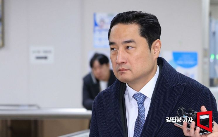 '도도맘' 김미나 씨에게 허위 고소를 종용한 혐의로 재판에 넘겨진 강용석 변호사가 6일 서울 서초구 서울중앙지방법원에서 열린 1심 선고 공판에 출석하고 있다.